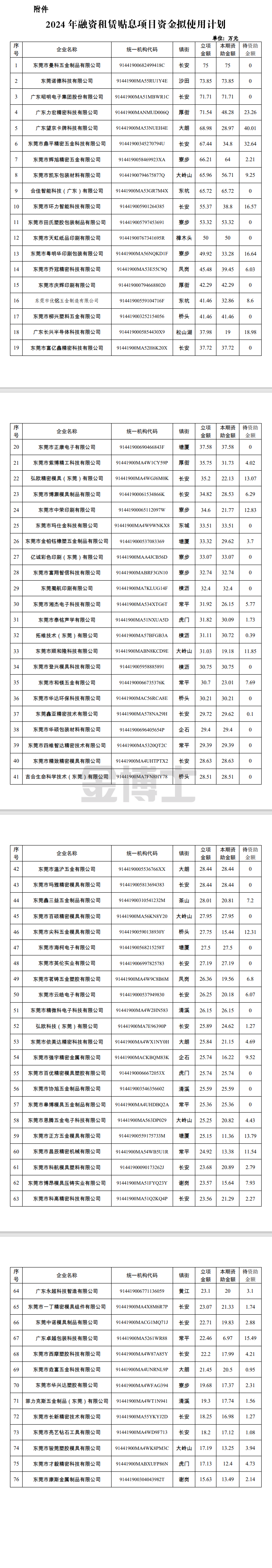 關(guān)于2024年東莞市融資租賃貼息項(xiàng)目資金擬使用計(jì)劃的公示